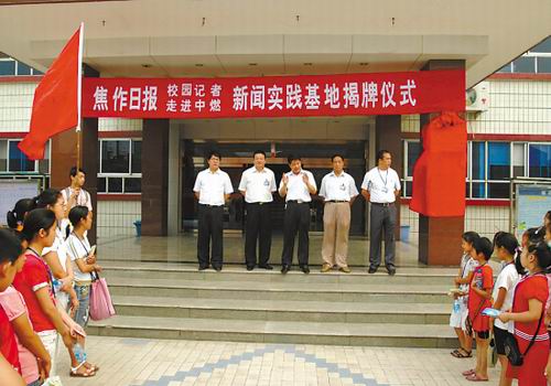 “中燃杯”新聞實地采訪競賽第一期活動舉辦后,在廣大校園記者及家長心中留下了深刻的印象。應(yīng)廣大校園記者的要求,也為了給廣大校園記者一個實踐平臺,焦作日報社與焦作中燃公司協(xié)商決定在焦作公司建立校園記者新聞實踐基地,并于昨日舉行了揭牌儀式。公司總經(jīng)理隋耀光、工會主席王保玉、副總經(jīng)理邢衛(wèi)東和日報社總編輯楊法育、副總編輯李弘出席了揭牌儀式。
