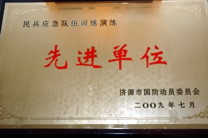 濟源公司訊 日前,濟源公司以其在該市應急隊伍訓練演練活動中的出色表現,被濟源市國防動員委員會授予了“民兵應急隊伍訓練演練先進單位”稱號。