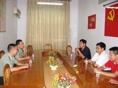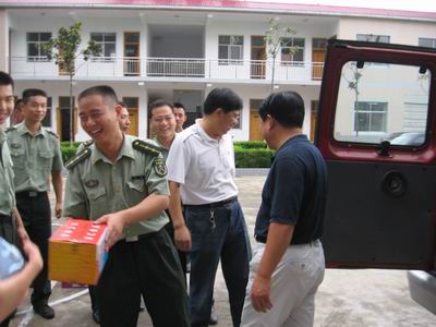 "漯河公司訊 時值7月31日,中國人民解放軍建軍節前夕,漯河中裕公司總經理羅青山一行頂著蒙蒙細雨,給駐某部通信連送來了節日的祝福和慰問。