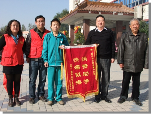 焦作公司訊 11月7日清晨,家住武陟縣大虹橋鄉(xiāng)官莊村的劉小三同學(xué)在其爺爺和叔叔的陪同下,特意為焦作志愿者愛心聯(lián)盟送來(lái)錦旗,以感謝其長(zhǎng)期以來(lái)的資助和關(guān)愛。焦作公司董事長(zhǎng)/總經(jīng)理隋耀光作為愛心聯(lián)盟的理事長(zhǎng)接受錦旗,并與學(xué)生及家長(zhǎng)親切交談。