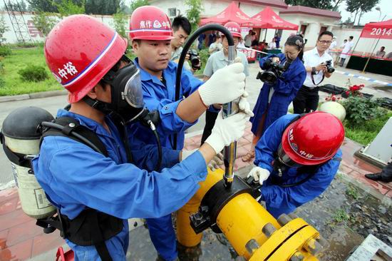 20日上午9:30,焦作公司博愛首站當班巡檢人員發現工藝區Ф219燃氣管道燃氣泄漏,立即向首站當班站長報告。當班站長接到報告后立即前往現場察看,確定燃氣泄漏后立即向部門領導報告。天然氣輸配部部長高東林接到報警后,立即下達搶險指令,啟動應急程序,公司應急搶險隊迅速趕往現場救援。相關站場接到通知后立即做好降壓運行。博愛縣政府接到報警后,立即啟動博愛縣應急救援預案,縣應急辦、安監、公安、消防、衛生、環保等部門相繼到達事故現場,消防人員立即對燃氣泄漏管道噴射消防水,避免險情擴大。縣安監局聯系專家組人員趕到現場,迅速了解事故情況,共同制定救援方案,最后決定采用打卡注膠的方式處理漏氣,經過近20分鐘的緊張救援,搶險人員成功將險情排除,燃氣管道泄漏事故得到了及時有效的控制,用氣恢復正常。