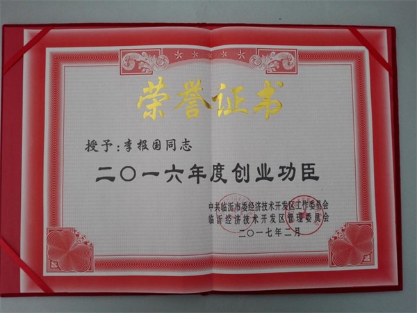 大會(huì)回顧了開發(fā)區(qū)2016年的整體工作開展情況,部署了2017年的重點(diǎn)工作,并對為開發(fā)區(qū)建設(shè)做出突出貢獻(xiàn)的先進(jìn)集體和個(gè)人進(jìn)行了表彰。臨沂中裕能源獲授2016年度“功勛企業(yè)”榮譽(yù)稱號,董事長李報(bào)國先生獲授“創(chuàng)業(yè)功臣”榮譽(yù)稱號。